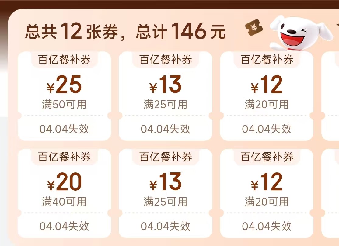 京东外卖 百亿餐补17-16券,满30-20券叠加好运叠4-3券。