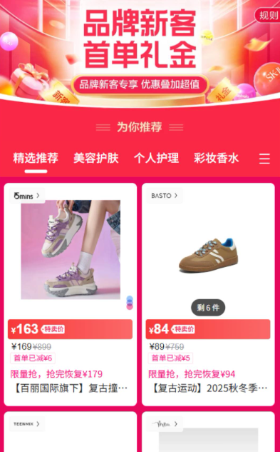 唯品会品牌首单礼金品牌新客专享精选推荐、美容护肤、个人护理、彩妆香水