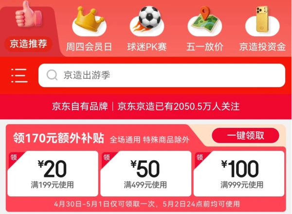 五一假期将至,京东京造带着超燃福利来啦🎉